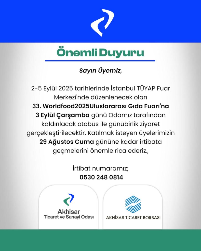 Akhisar Ticaret Odası yeni web sitesine hoş geldiniz.